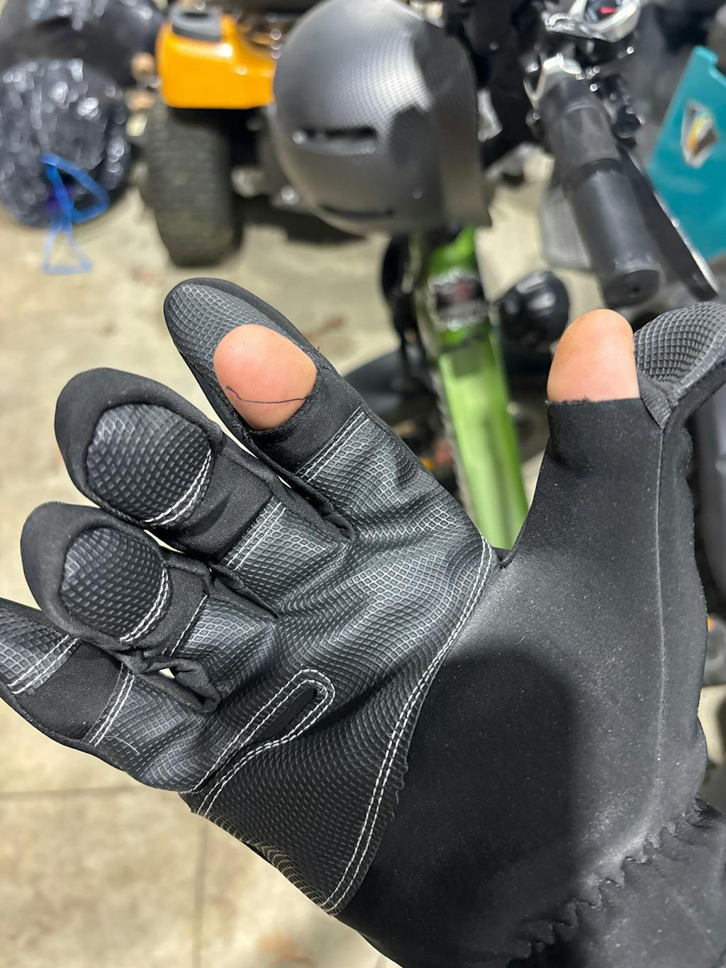 Received these gloves wasn’t expecting quality of the gloves. I now know and understand why the slots for the fingers tips to control your phone thicker slightly thicker type bike gloves for warmth. Also the zipper allows easy on and off plus wearing the gloves and grip is great. Very good quality glove to wear