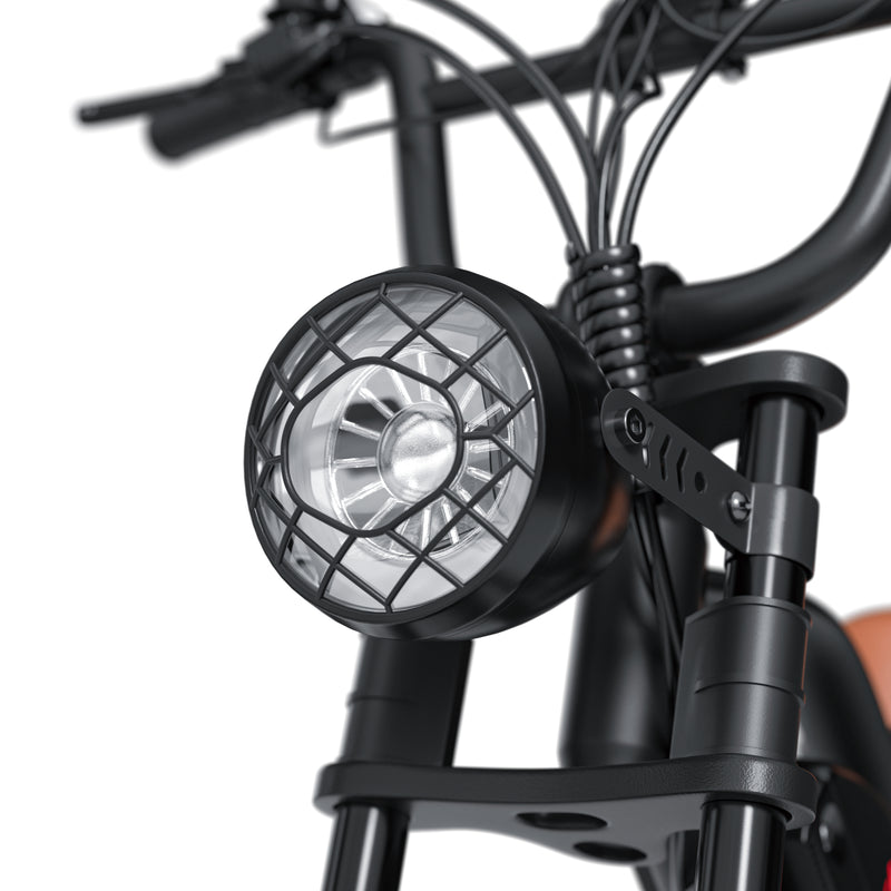 48V LED headlights, Left-mounted 12V dual-tone horn ; 48V tail light, brake highlight, left/right turn signals
