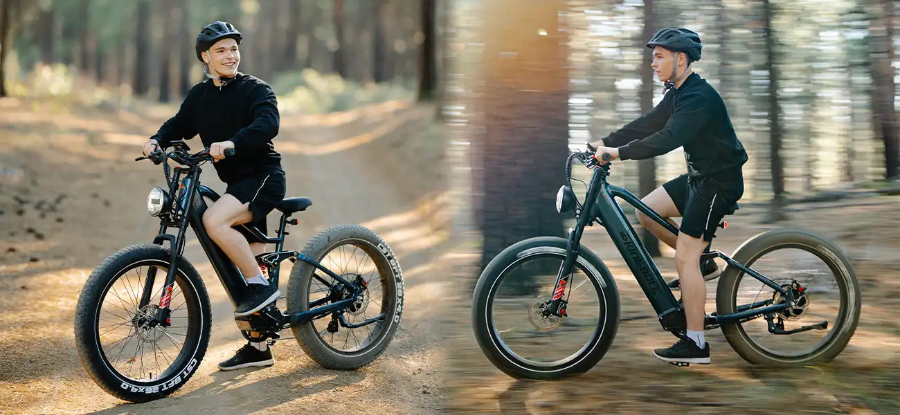 Man riding kingbull ebike rover2.0 in the forest